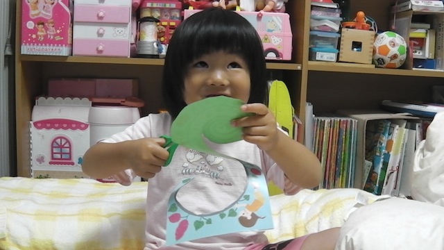 最近、はさみでチョキチョキするのが楽しいらしく
